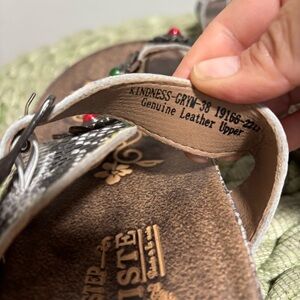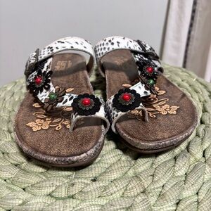 Tags: leather, quality, comfort, arch support, everyday, walking, snakeskin, floral, artistic, colorful, cute, unique, quirky, toe loop, slip on, slide, open toe, spring, summer, vacation, travel, cruise wear, resort wear