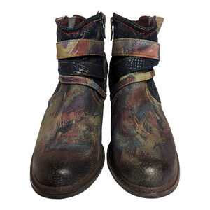 L’Artiste by Spring Step Shazzam Navy Hand Painted Leather Ankle Boots 40