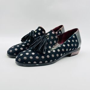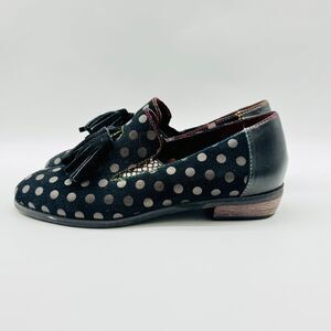 L'Artiste Shoes Womens 38 US 7.5 8 Black Gold Polka Dot Loafers Tassel Heels