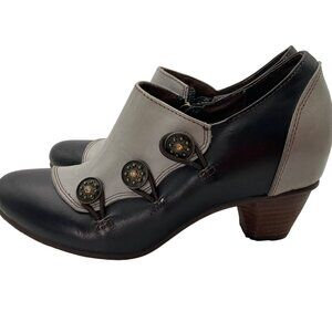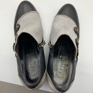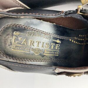 L'Artiste Spring Step 36 US 5.5-6 Black Greentea Leather Button Booties Pumps
