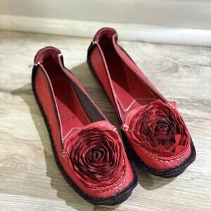 L’Artiste Spring Step Dezi Red Slip On Leather Shoes Flower Size 37 (US 6.5-7)
