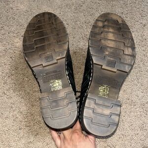 L'Artiste Spring Step Fallinluv Leather Lace-Up Boots Metallic Black 36 / 5.5-6. This laced-up look is aptly named Fallinluv - and you'll be instantly head-over-heels. Combining vintage vibes w/ beautiful artistry, this creative cure for the common boot is a mixed-media masterpiece. It's distinctively detailed w/ floral & butterfly embossing on the fold-over cuff, coordinating multi-metallic accents, and stylish rainbow stitching. Comfort is key w/ a well-cushioned footbed & velvety soft lining (w/ a peacock feather print). These boots will inspire plenty of pairings (think distressed denim or a boho dress). Great pre-owned condition. No stains/flaws. Smoke/pet free home. Offers welcome. Bundle & save. Ship same/next day. Packaged w/ care.