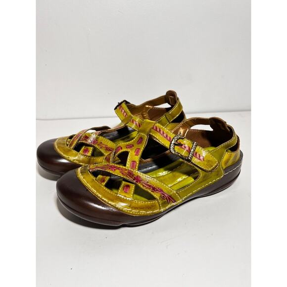 L'Artiste Spring Step NEW Green/Red Shooting Star Hugo Shoe Sandal 39 EU 8.5 US