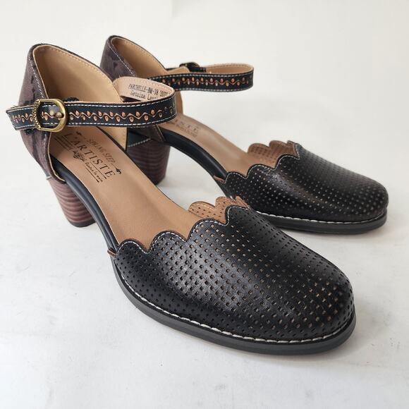 L'Artiste Spring Step Parchelle Mary Jane Heels EU 38 US 7.5-8 Black Leather