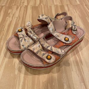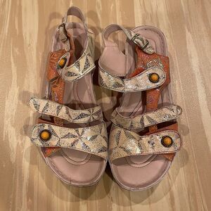 L'Artiste Spring Step Payokya Metallic Sandals Size EU 40 Artsy Tan Orange