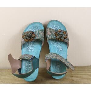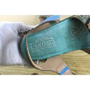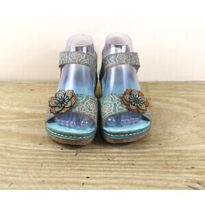L'Artiste Spring Step Sandals Womens 6.5 Green Blue Cuteness Floral Wedge Shoes
