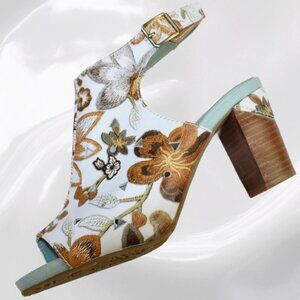 L’Artiste Spring Step White Brown Multi Tapestry Leather Sling Back, 40 …