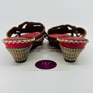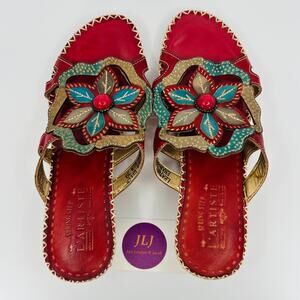 L'Artiste by Spring Step Women's Enah Red/Multi Leather Floral Slip On Sandals Size 39 EU/ 8.5 US
