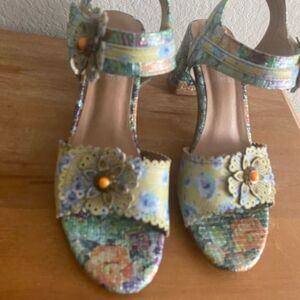L'Artiste Voguesh Multicolor Floral Block Heel Sandals Spring EU 39 US 8.5 BOHO
