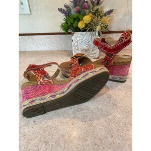 Show off your unique style in the vibrant and French-inspired L'Artiste by Spring Step® Annmarie open-toe wedge sandal.
