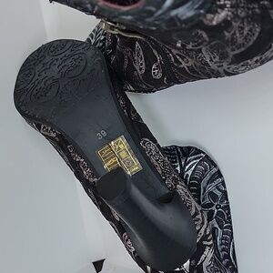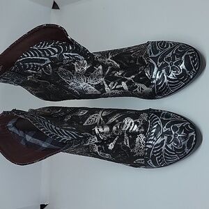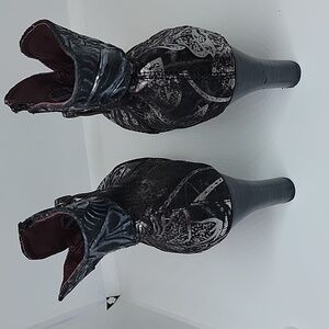 L'Artiste Womens Lidia Ankle Boots Black Silver Floral Leather Zip 8.5 EUR 39