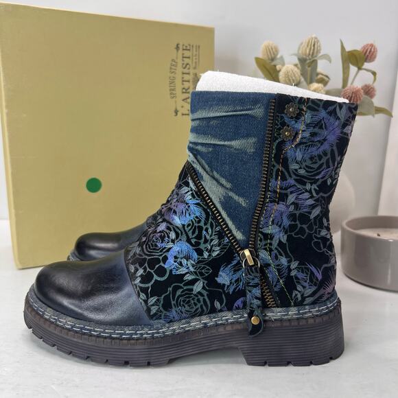 L'Artiste by Spring Step Avrilrose Leather/Textile Boot Multi Women 6.5-7 NWB