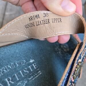 L'Artiste by Spring Step Blue Floral Leather Strappy Arima Wedge Sandals EU 38
