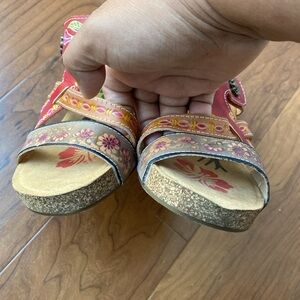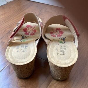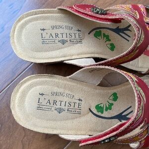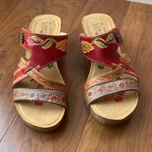 L'Artiste by Spring Step Women's Floral Embroidered Red Leather Wedge Sandals 41