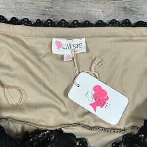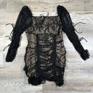 L’Atiste Black Lace Ruched Bodycon Dress 3X Off Shoulder Mesh NWT