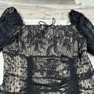 Details: Fully lined. Pull-on style. Fabric has some stretch. Sheer sleeves with ribbon ties. Best for events, date nights, or statement dressing.