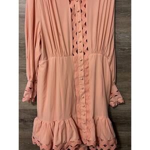 L'Atiste By Amy Womens Peach Pink Lace Trim Mini Dress Smocked Waist Sz 1X NWT