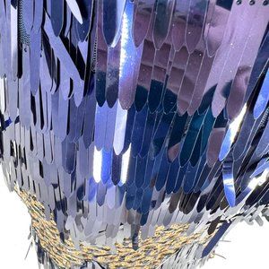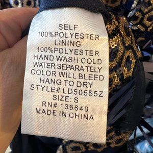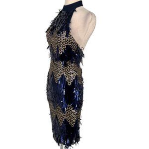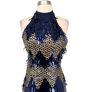 L'Atiste Metallic Halter Honeycomb Dress Blue Gold Size Medium NWT