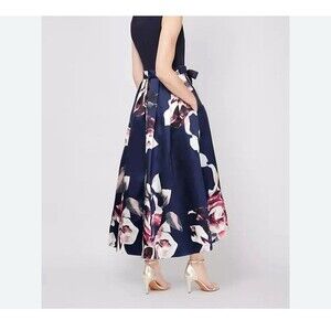 L'Atiste Womens Maxi Low And hight Floral Skirt Blue Floral Size M