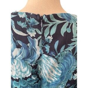 L'Atiste by Amy Layered Ruffle Tiered Dress Blue Floral Women's 1X Sheer Sleeves
