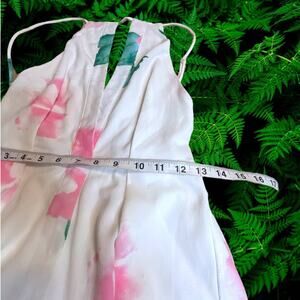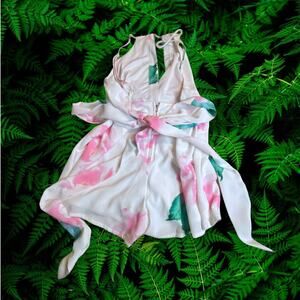 L'Atiste by Amy White Pink Floral Summer Backless Large Bow Romper Size Small