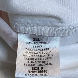 In excellent used condition. 100% Polyester. Zipper back enclosure. Size Small.