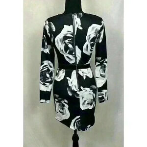 L'Atiste by Amy Mini Shift Dress Navy Blue White Floral Long Sleeve