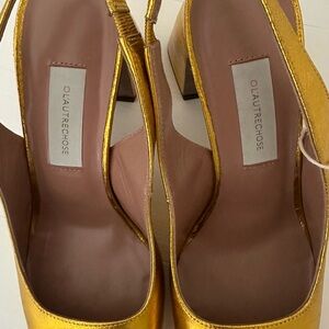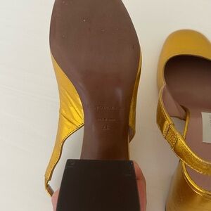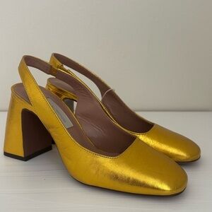 L’Autre Chose Gold Metallic Block Heel Slingback Pumps Size 37 – Never Worn