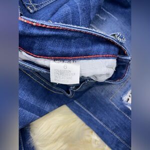 L&B Blue Denim leopard Animal Print Patch Cuffed crop pants sz 6