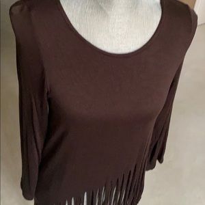 L&B Brown Stretch Fringed Top size Small. Fringe comes up in front and is long in the back...see photos. Smoke free home. Soft and stretchy.