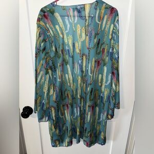 Vibrant kimono with cactus design. Lightweight and flowy. Perfect for layering.