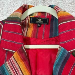 L&B Colorful Striped Blazer Jacket Autumnal Long Line Stripe Cotton Size 2X