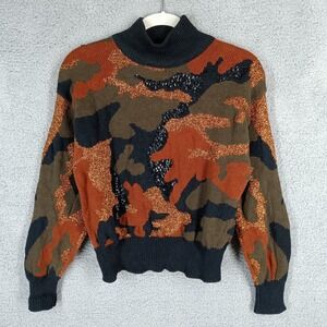 L.B. Diffusion Vintage Camo Sweater Metallic Embellished Mock Neck Pullover