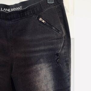 Comfortable pull on jean with great details. LB pull on distressed jean with zip ankles. Skinny leg, stretch. Faux front zip pockets and real flat back pockets.