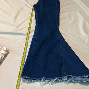 L&B Lucky & Blessed Flare Jeans | Dark Wash Pull-On Bell Bottoms | Frayed Hem