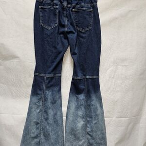 L&B Lucky & Blessed Ombre Wide Bell Bottom Dark & Light Denim Jeans Sz XL