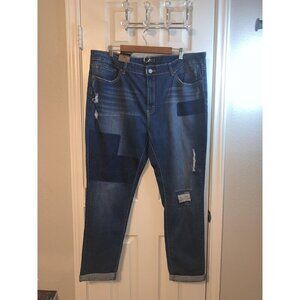 L&B Lucky & Blessed Patchwork Straight Leg Medium Wash Denim Blue Jeans Size 3X