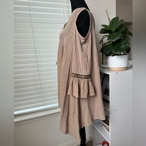 L&B Lucky Blessed Western Boho Tunic Top Sz M Beige Embroidered Cold Shoulder