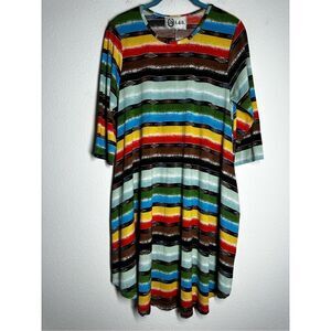 L&B Lucky & Blessed Rainbow Aztec Pattern Striped High Low Slinky Dress Sz S