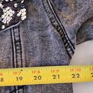 L&B Lucky and Blessed Womens Black Sequined Distressed Denim Jacket Large