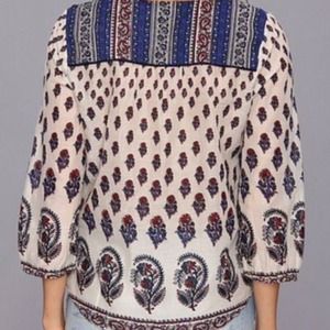 Lucky Brand paisley orange, blue, & cream print top. Indian cotton boho chic tunic. 🌀Please send a reasonable offer through offer button!🌀