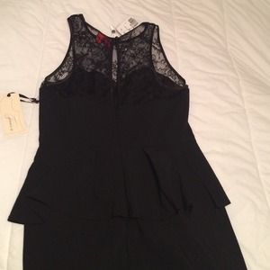 Juniors large. Little black peplum dress. Lace detailing on top, heart shaped bust, semi open back, small back slit. Never worn!! New with tags!