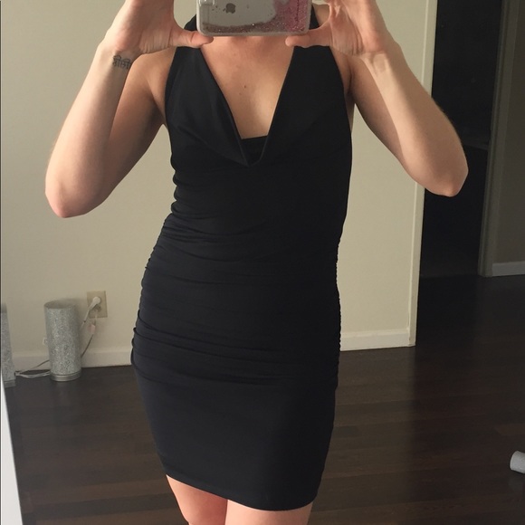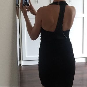 Hot little black dress with flattering ruching on the torso and sequin detail on the back