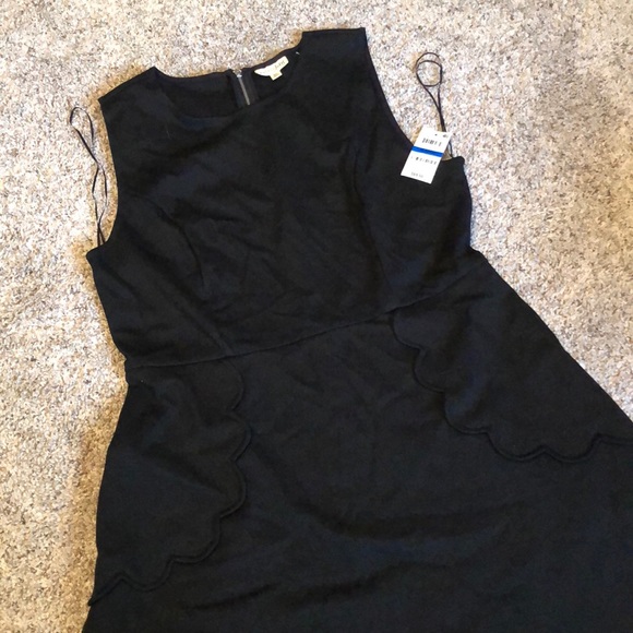 sturdy fabric for adventurous evenings • high neckline • scalloped accent on each hip • silver zipper at back • structure that does not hang on body creating flattering silhouette • 36” shoulder to hem