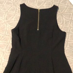 Black dress with hidden side zipper. Two front faux pockets with golden buttons. Gives me sailor or nautical vibes. Perfect for conservative event such as work, funeral, etc. worn once.