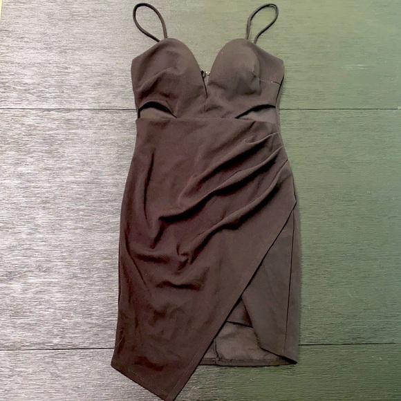 Asymmetrical LBD with cutouts, low-cut, back zip
