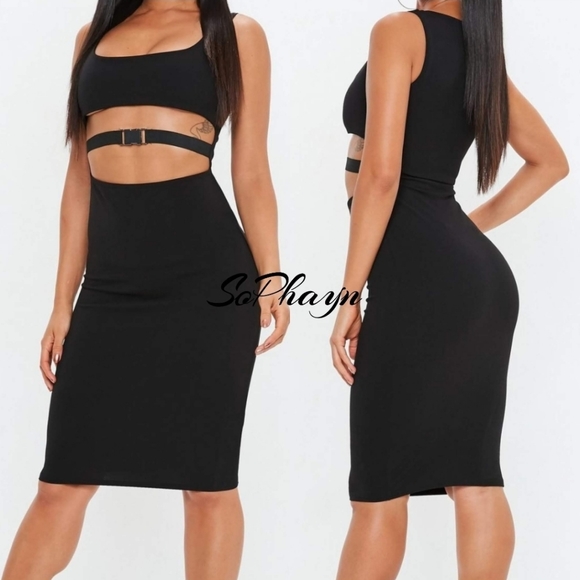 Boohoo Cut-Out Buckle Detail Midi Dress