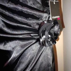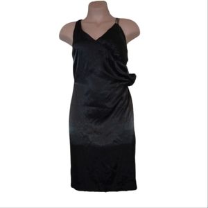 Little black dress with ruching at the side and a satin finish. Perfect for any semi-formal occasion, and can be dressed up with a pair of nice heels for formal occasion. New never used.
