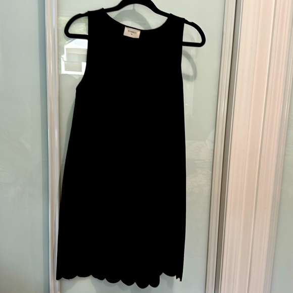 Cute little black dress perfect for work or a night out. Bottom hem is scalloped for extra touch.