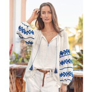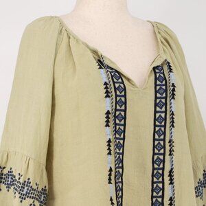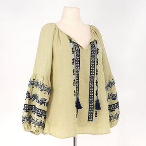 LBENARAS BY CITRUS 100% Linen Embroidered Billowy Blouse Sage Green Size L